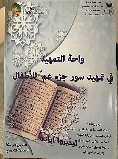 كتاب تمهيد جزء عم وتبارك والذي يعتبر كدليل للمعلمة يسهل عليها التمهيد للسور القرآنية بالإضافة إلى كتاب الطريق المعين لوسائل التسميع والذي يعرض عدة وسائل تساعد المعلمة في التميز في حلقتها